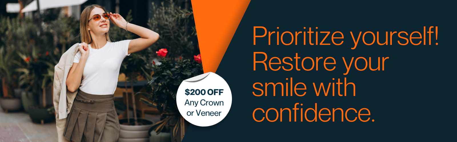 Disclaimer: *Must mention offer to receive discount towards dental crown or veneer. Discount given off needed or elective dental treatment after completion of comprehensive exam and x-rays. Treatment must be completed within 30 days of first visit to receive discount. May not be combined with any other offer, discount, insurance, or reduced-fee program. Not valid on previous treatment or treatment already begun. ADA 2740, 2960, 2961, or 2962. Offer valid until 03/31/2026. Terms and conditions may apply.